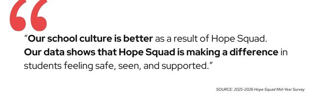 Schools consistently describe Hope Squad’s impact as invaluable.